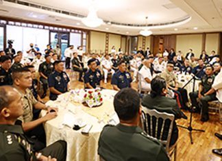 House Speaker Ferdinand Romualdez gives a talk before generals, flag officers, and senior officers of the Armed Forces of the Philippines (AFP) who pay a courtesy call on him and the leadership of the...