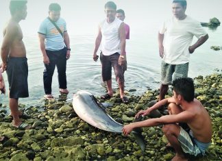 ORMOC CITY- A dolphin was reported to have died after it entangled in a fish net in Barangay San Roque, Tomas Oppus, Southern Leyte on Monday (May 15) at about 6:30 am.