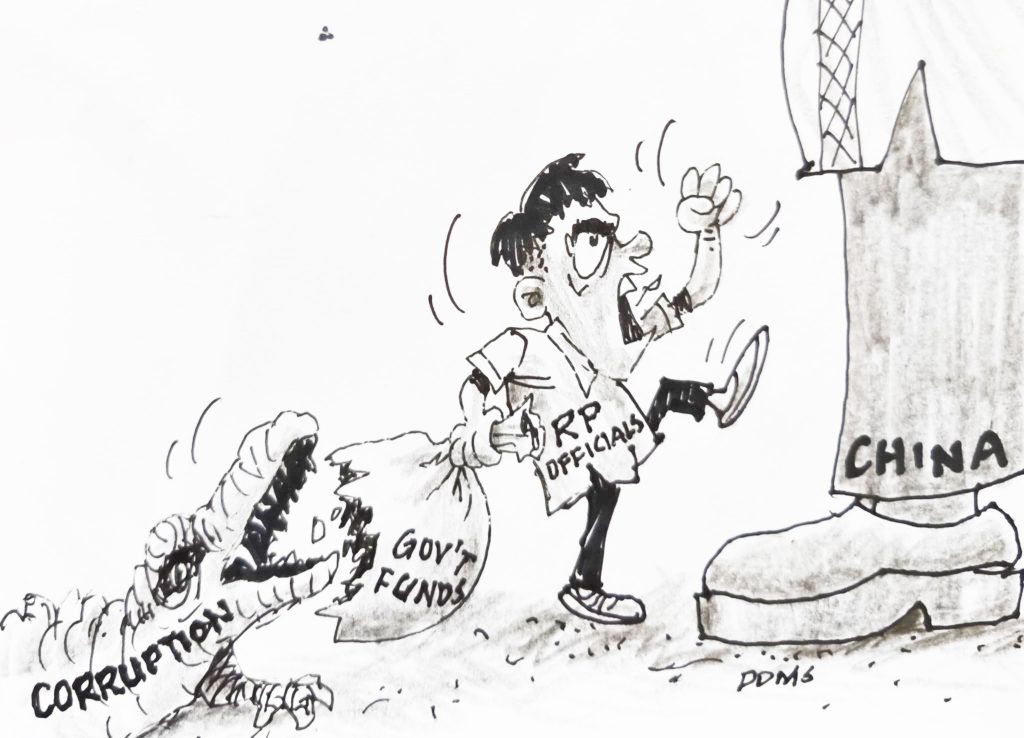 There is no argument against the fact that the protection of Philippine sovereignty is the responsibility of every Philippine official. Eloquent denunciations against China on the West Philippine Sea issue may be appreciated by the public. However, making such denunciations requires much more courage than taking decisive action against allies, benefactors, and even political sponsors who may be involved in corrupt activities. While the Philippine government is quick to express its outrage against China on the West Philippine Sea issue, investigations into corruption activities within the Philippine government are going at a snail’s pace or, even worse, not conducted at all.