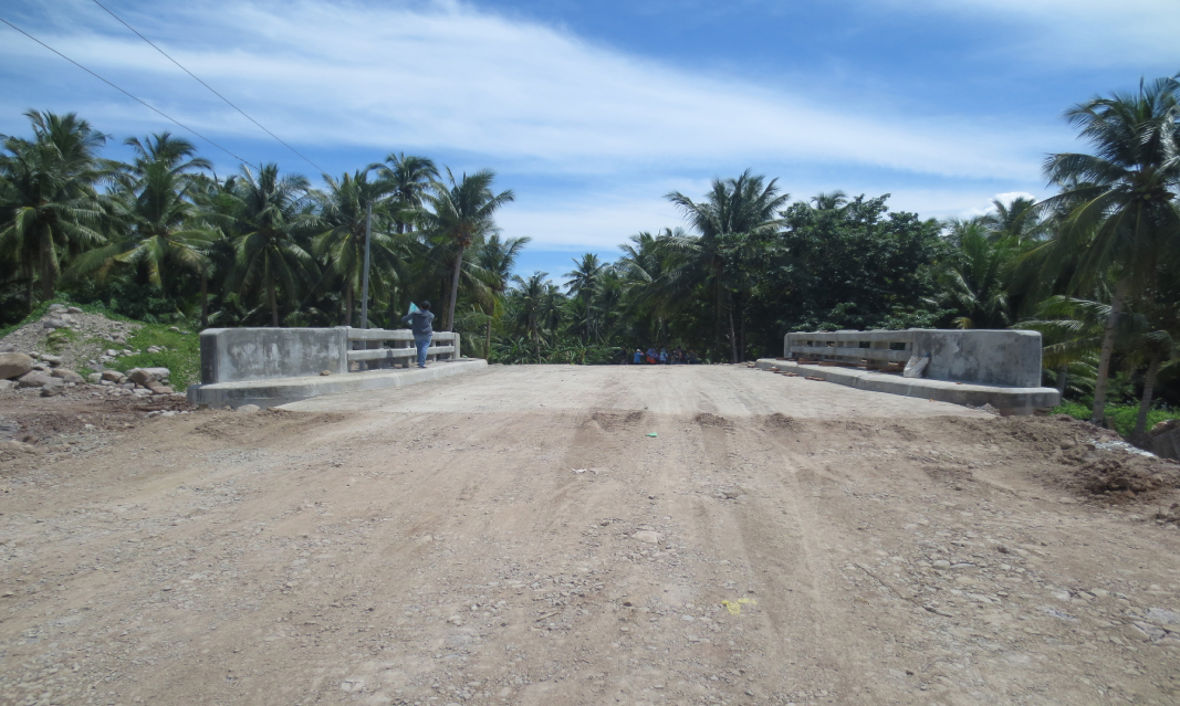 The newly-completed bridge is a reinforced concrete deck girder (RCDG) bridge with a width of 8.70 meters and a length of 9.0 meters located along Maripipi Circumferential Road.