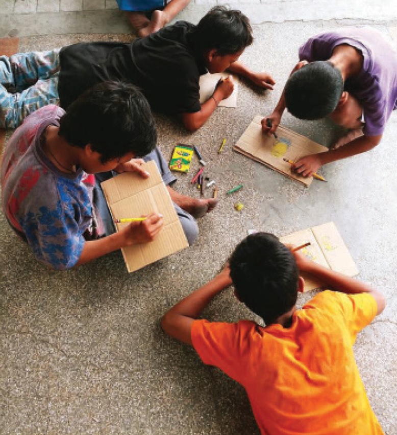 The former beggars were given drawing materials by Calag but some of them lost their materials reason why he devised some ways like using paper boards.