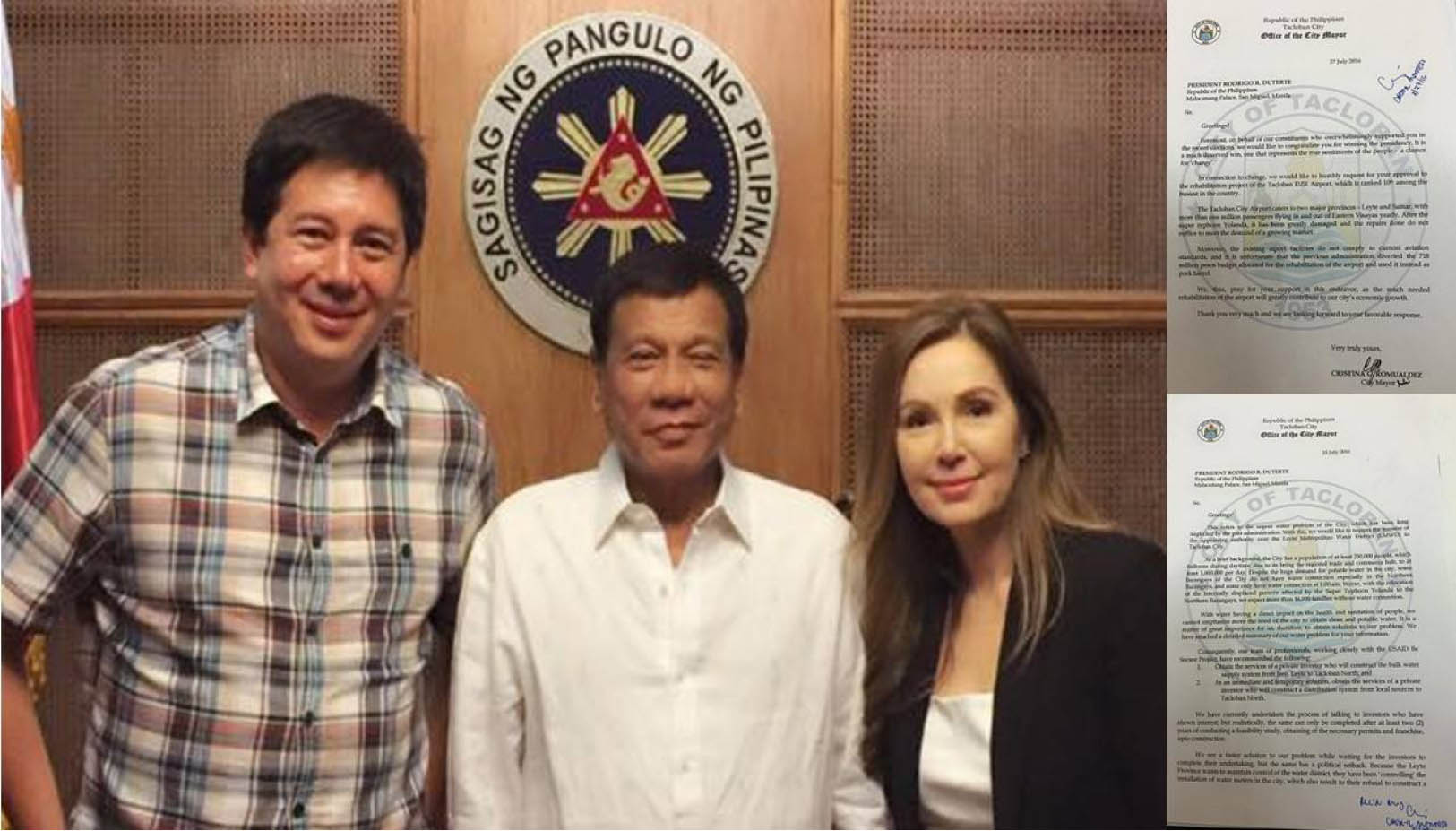 TACLOBAN CITY- Mayor Cristina G. Romualdez of this highly urbanized city of Tacloban, concerned of her children’s recent plight, acted recently by seeing President Rodrigo Duterte in Malacañang together with then Mayor Alfred S. Romualdez, to personally hand over two letters on the water problem of the northern barangays where most permanent shelters are located and the overdue rehabilitation of the Daniel Z. Romualdez Airport, this city.