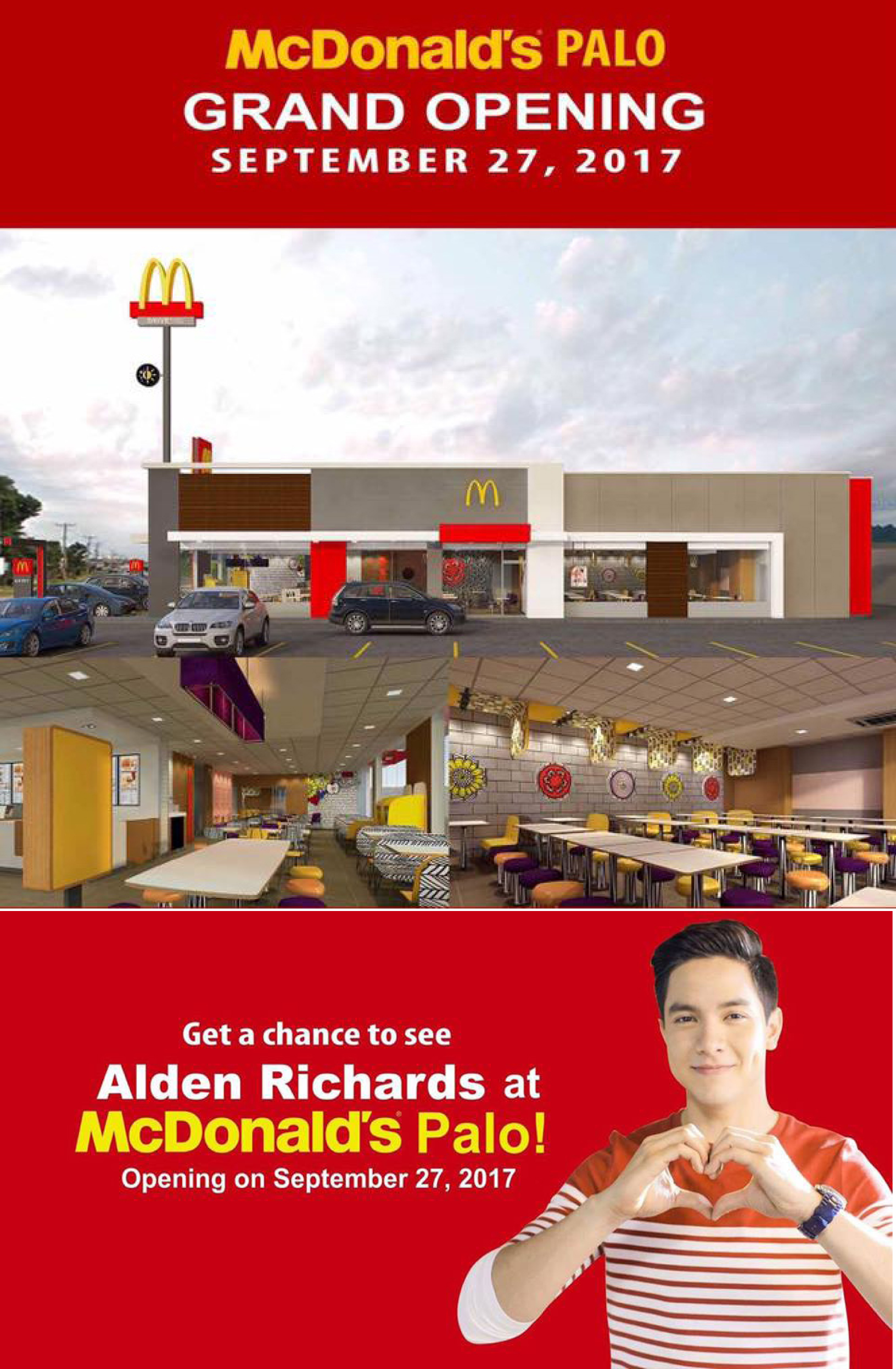 And to further enliven its grand opening, one of the country’s hottest actors, Alden Richards, will help welcome McDonald’s Palo customers.