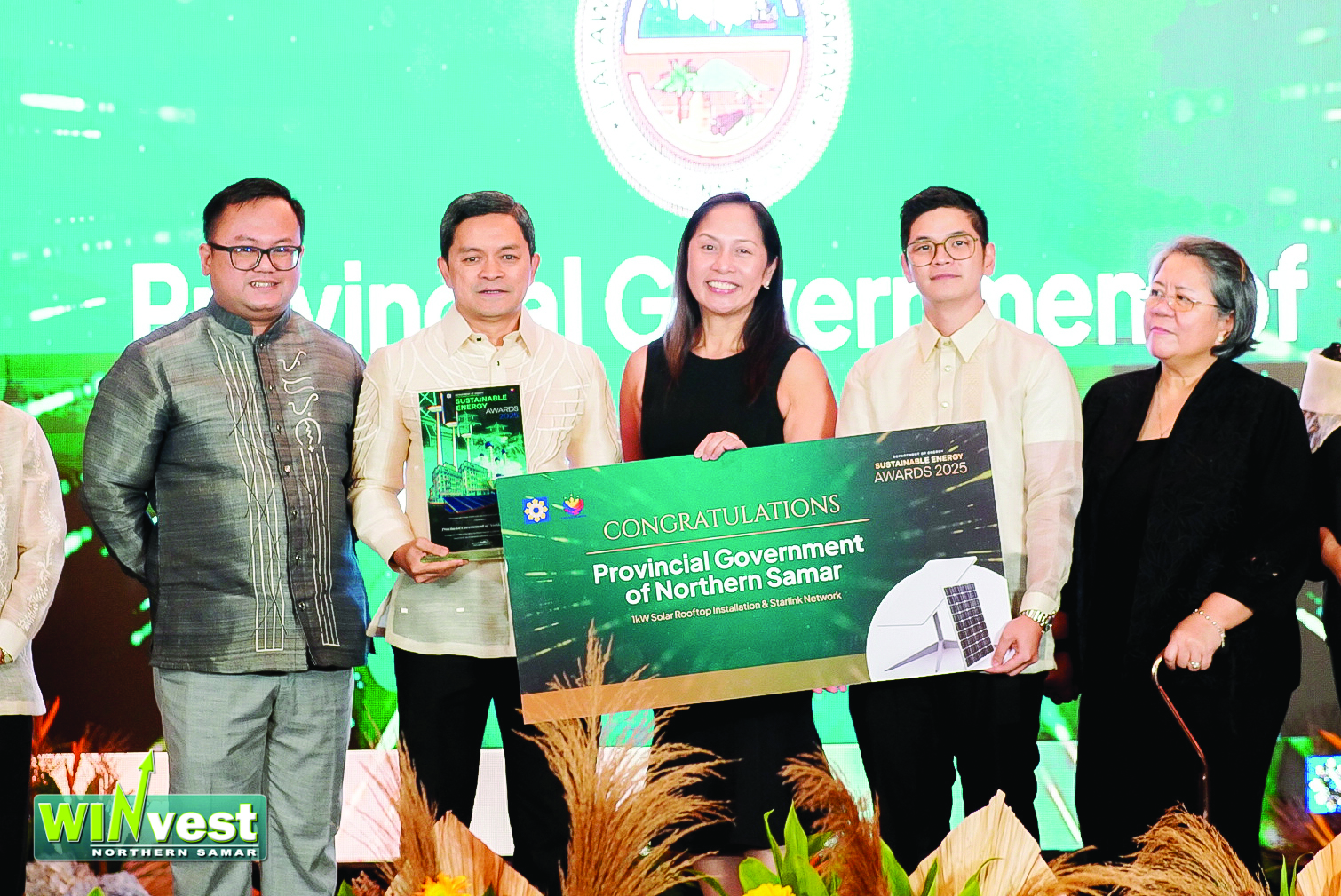 TACLOBAN CITY — The provincial government of Northern Samar has earned national recognition for its strong push toward renewable energy development after bagging the Sustainable Energy Award in the Local Government Unit (LGU) category from the Department of Energy (DOE).