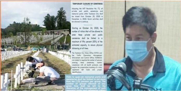 In a statement, the city mayor confirmed that the temporary closure of cemeteries will start on October 29 until November 4 and in compliance to a directive from the national inter-agency task force.
