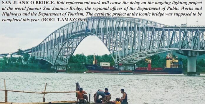 TACLOBAN CITY, – The Department of Public Works and Highways (DPHW) and the Department of Tourism (DOT) issued a joint statement informing the public that the long awaited San Juanico Aesthetic Lighting project will be delayed due to the on-going bolt replacement project.