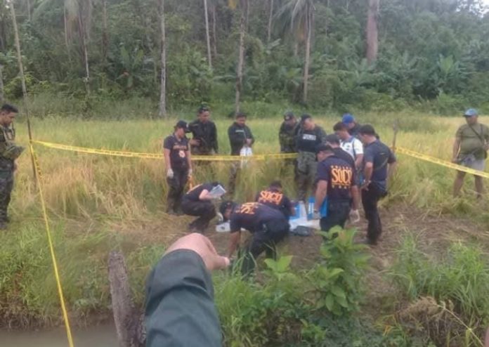 NPA LEADER. Government operatives scored a victory on its fight against communist group with the death of a leader of the New People’s Army (NPA) operating in Northern Samar on March 6. The alleged rebel leader, Salvador Nordan, was killed after he fought back during an operation conducted by the soldiers and police. Photo shows police personnel processing the dead body of the rebel leader at Barangay Guba, Catarman.(Photo Courtesy Norsam.net)