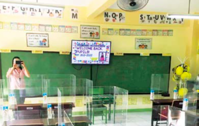 18 public schools in Eastern Visayas to join in piloting face-to-face classes for this school term. Due to the pandemic caused by COVID-19, schools across the country are practicing distant learn- ing system. Photo shows an elementary school in Navo- tas how a classroom will look like following the face-to-