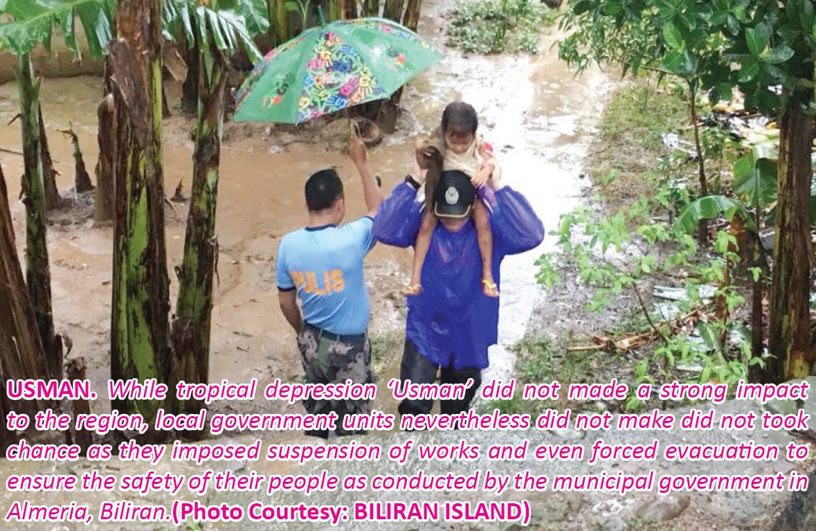 TACLOBAN CITY-Work in both public and private offices were suspended in various areas here in the region on Friday (Dec. 28) amid threat of tropical depression ‘Usman.’