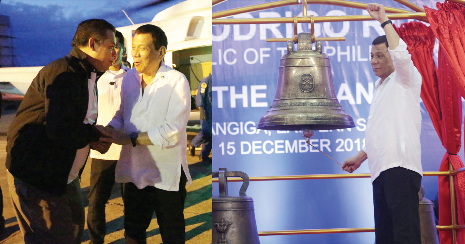 Lakas-CMD party president and former Leyte (1st dist) Rep. Martin Romualdez expresses gratitude to President Rodrigo Duterte at Daniel Z. Romualdez Airport in Tacloban City after he went to Balangiga, Eastern Samar to witnes the turnover of the three historic bells on December 15. Mr. Duterte rung one of the bells before these were turned over to the St. Lawrence The Marytr Church.photo by Ver Noveno
