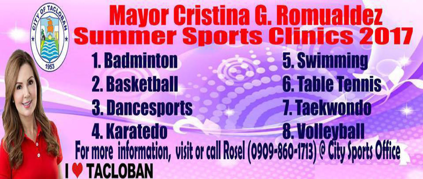 TACLOBAN CITY- To keep Tacloban’s youths preoccupied this summer season, the City Sports Office will offer summer game events through the Mayor Cristina G. Romualdez (MCGR) Summer Sports Clinic 2017.