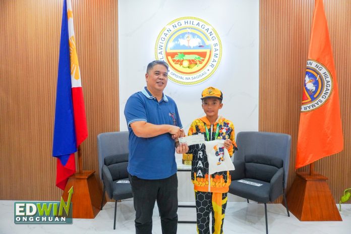Northern Samar Governor Edwin Ongchuan handed over to Winston Timothy Lluz a cash incentive worth P10,000 for winning gold medal in lawn tennis (men’s double, elementary category).Lluz is one of the two Northern Samar athletes who won medal in the recently held Palarong Pambansa 2024 in Cebu City. (NORTHERN SAMAR PROVINCIAL INFORMATION OFFICE)