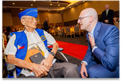 DAVAO CITY– As the United States and the Philippines celebrate 80 years of diplomatic ties, U.S. Embassy Chargé d’Affaires, a.i., Y. Robert Ewing honored Filipino war veterans at a Congressional Gold Medal awarding ceremony, the first of its kind in Tagum and second time in Mindanao. In Davao, he deepened economic and people-to-people ties in meetings with public and private sector leaders as well as students.