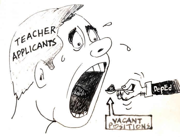 Just a few weeks from now and hundreds, thousands of education graduates will again troop upstage to receive their diplomas, marking the end of their academic, undergraduate struggles. Soon, they will join the teacher applicants seeking employment in the department. But it’s a huge number they will be joining in, because of every few vacant slots in DepEd, thousands of applicants are waiting to grab them.