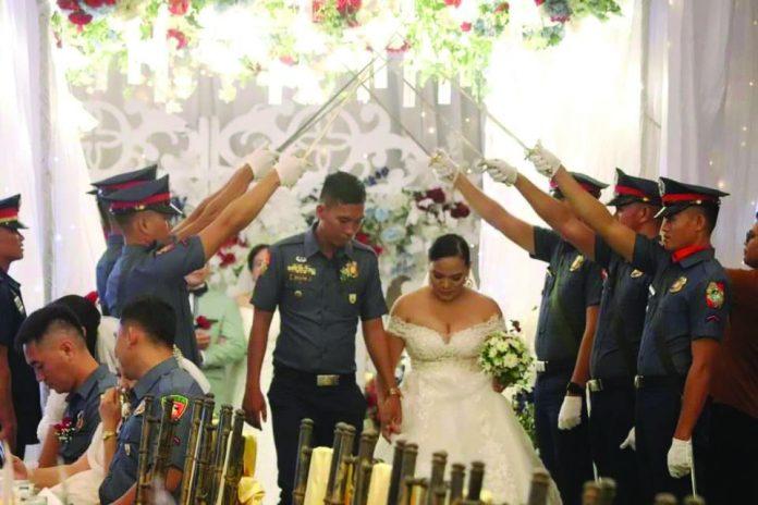 About 50 police personnel exchanged vows with their respective partners during a mass wedding sponsored by the PNP regional headquarters on Friday (February 24). This program underscores the police organization’s commitment to promoting morality and decency among its members.