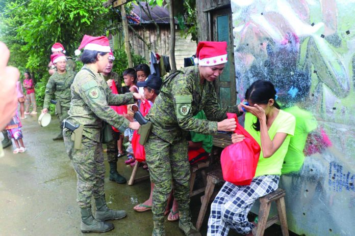 The activity served as a way of sharing some blessings to the indigents in the form of Noche Buena packages that were raised out of soldiers’ contribution of one-day meal allowance each that when collected, was able to raise a considerable amount to procure grocery items that composed the Noche Buena packages.