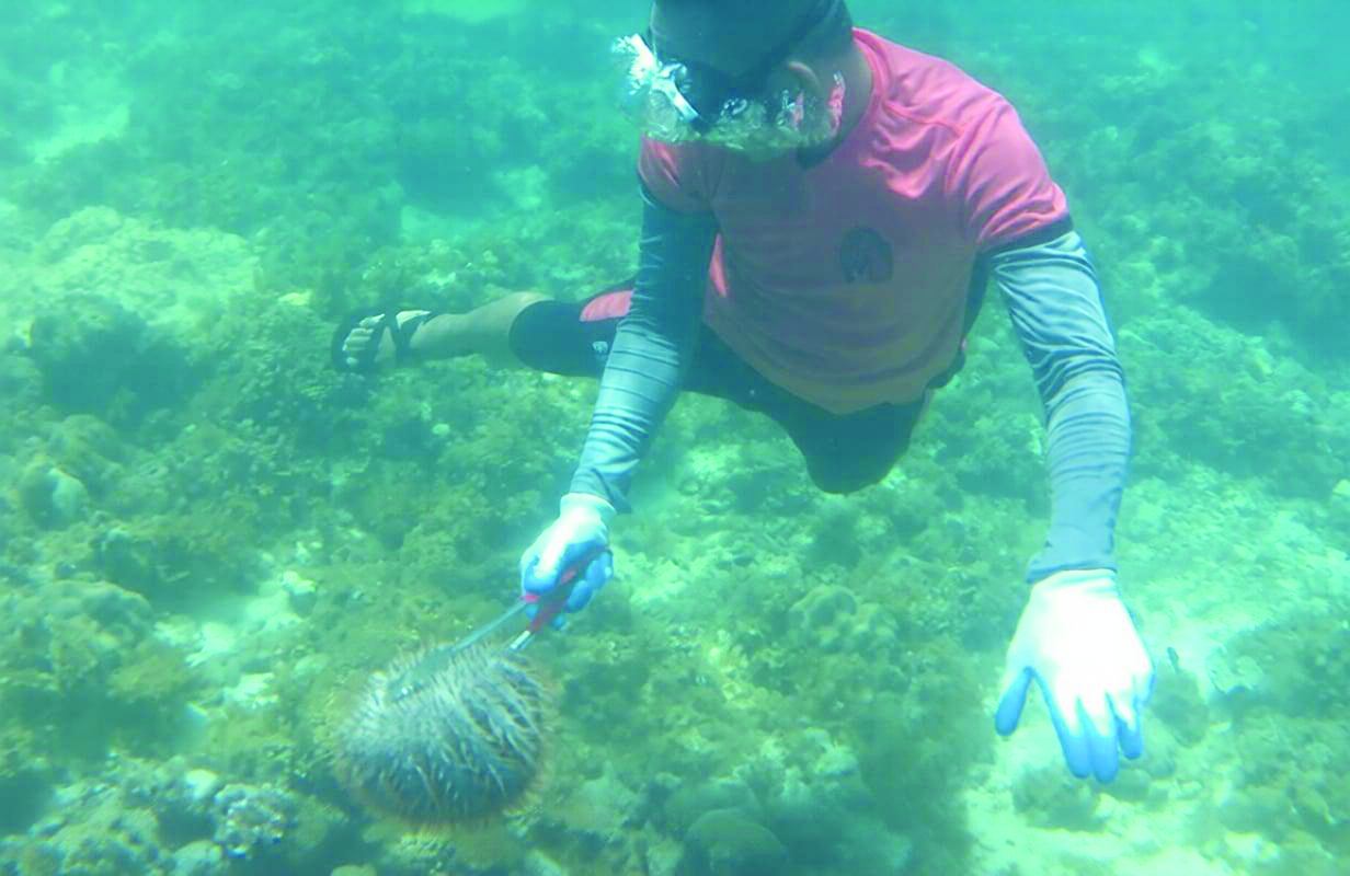 The team covered about 400 square meters of reef during the activity. Of the total removed, around 500 crown-of-thorns were neutralized through injection, while approximately 800 were manually extracted.