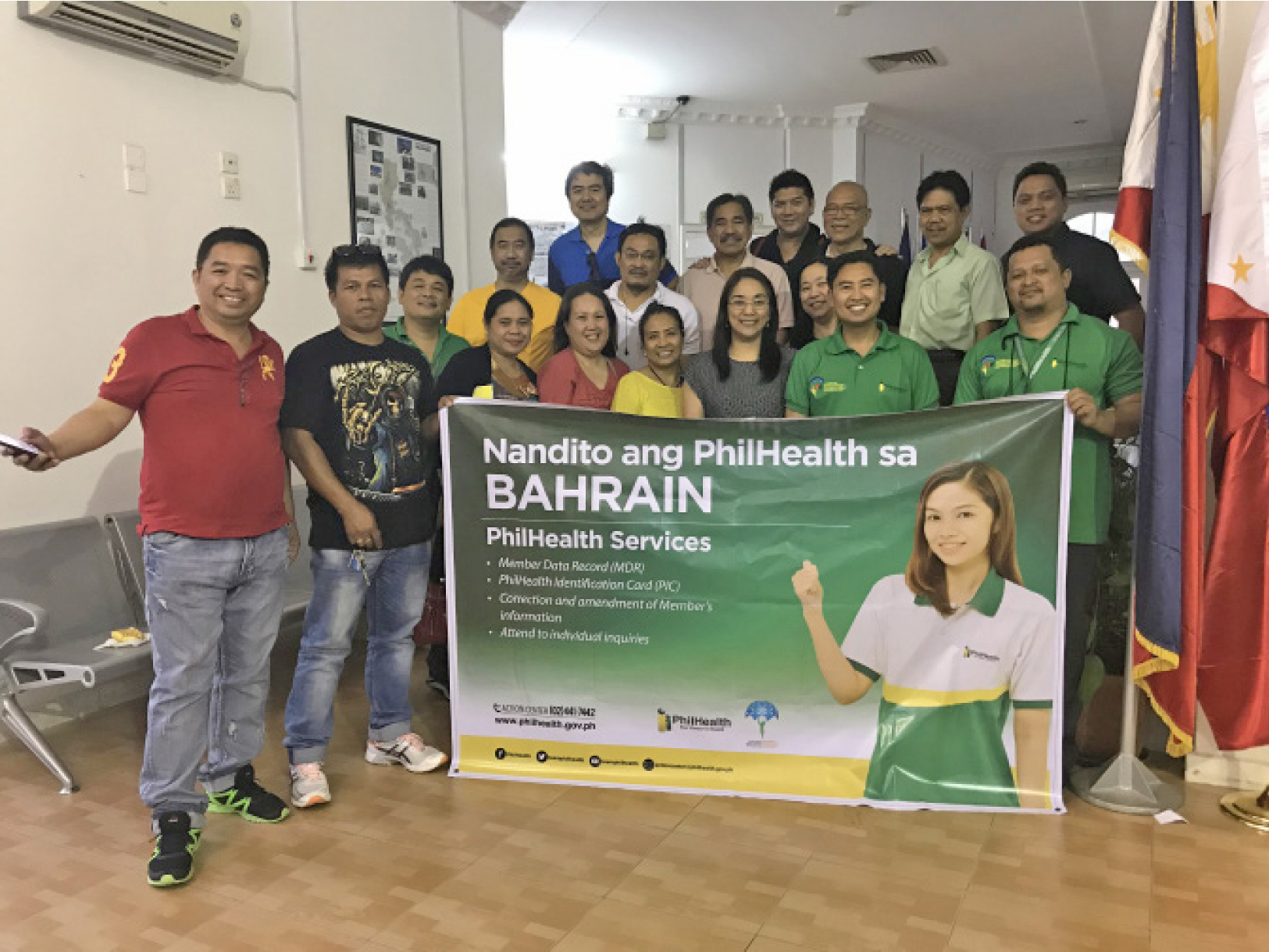 The service mission was conducted to bring PhilHealth services closer to the thousand ofFilipinos working in this progressive Arab country. Bahrain is host to 60,000 Filipino workforceto include professionals, skilled and semi-skilled workers and domestic helpers(Avendaño, PDI 2017).