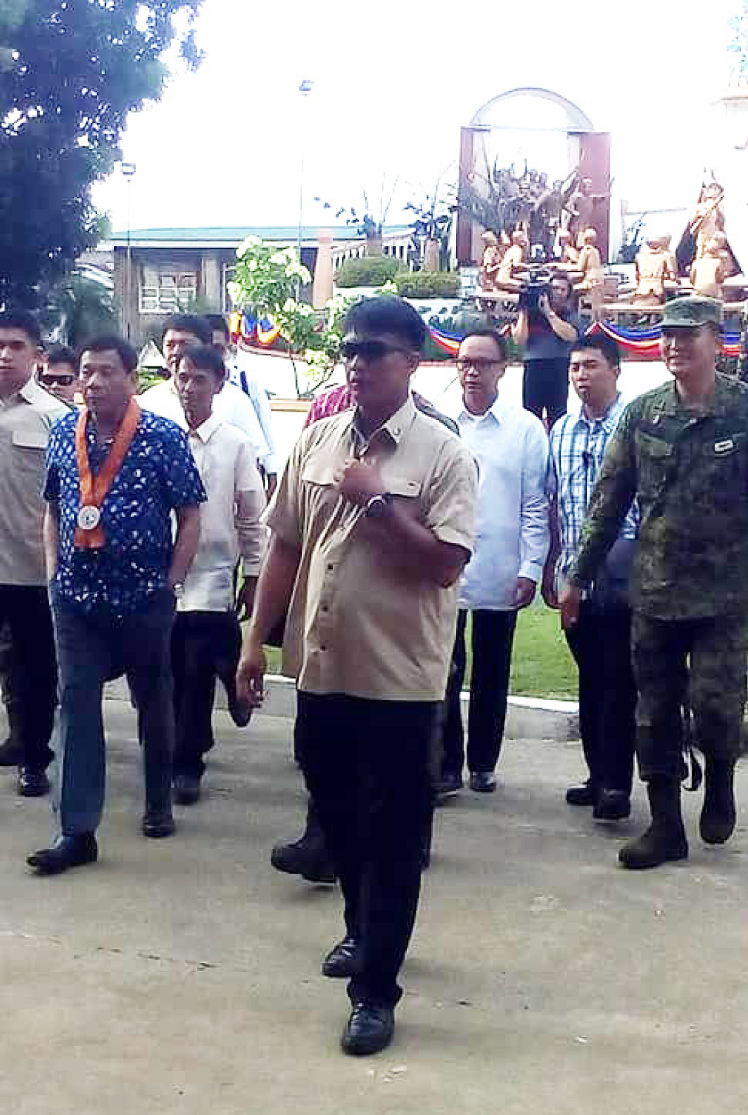 Mr.Duterte, who left the town at around 5.45 pm, was not able to attend the reenactment.