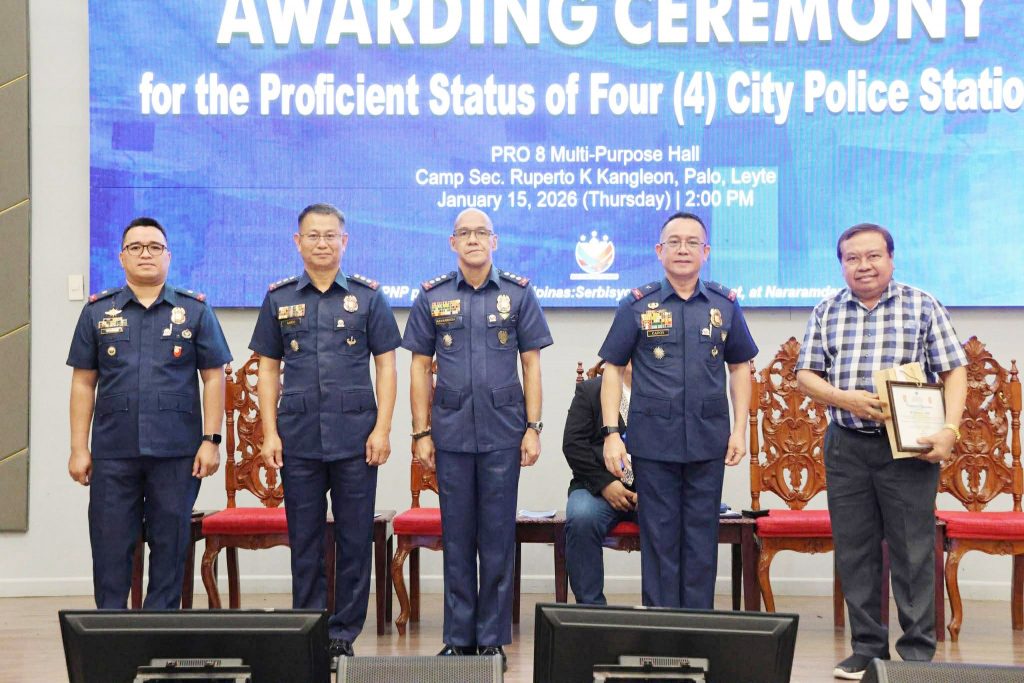TACLOBAN CITY — Under the leadership of Regional Director B/Gen. Jason Capoy, Police Regional Office 8 (PRO-8) recently recognized four city police stations for achieving Proficient Status under the Performance Governance System (PGS) during a ceremony held at the PRO-8 Multi-Purpose Hall, Camp Sec. Ruperto K. Kangleon in Palo, Leyte, on January 15, 2026.