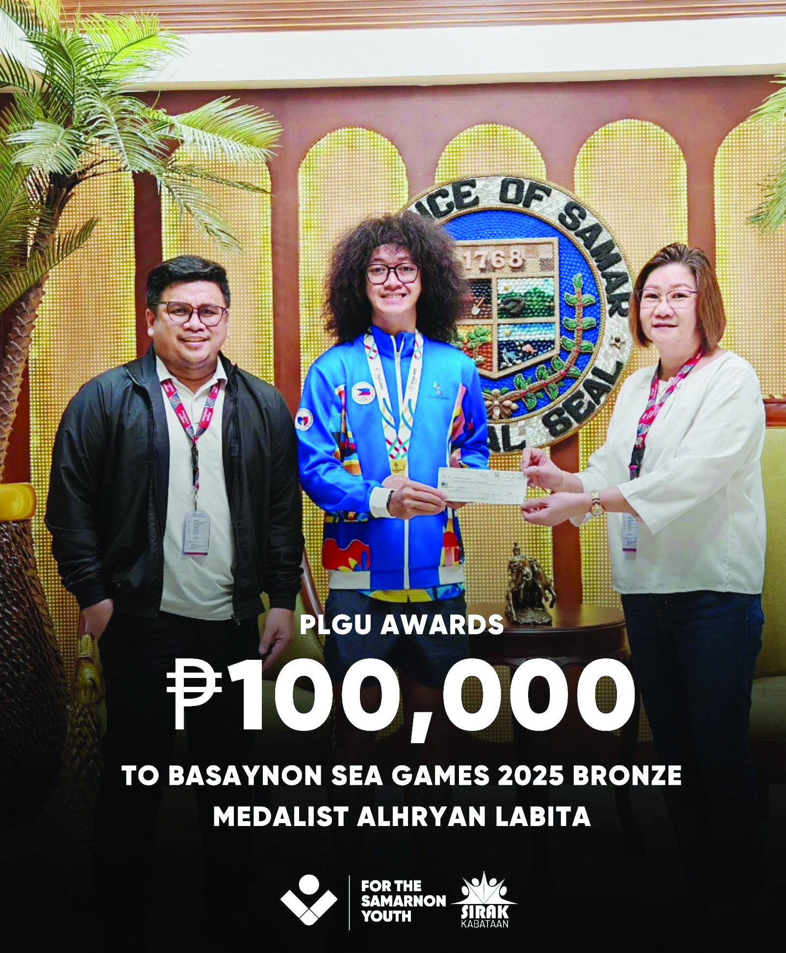 TACLOBAN CITY — The provincial government of Samar has awarded a P100,000 cash incentive to athlete Alhryan Labita in recognition of his bronze medal finish at the 33rd Southeast Asian Games in Thailand.