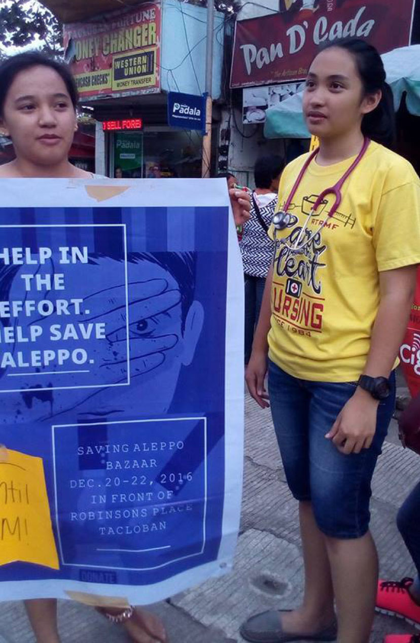 For three days, Frances Anido, 18 and her friends not only endured rains and dusts to sell the used clothings in a busy street along Marasbaras district that they have collected but also tried to explain to their buyers about Aleppo, a city in Syria that is besieged with civil war that resulted to deaths of thousands of men, women and children.