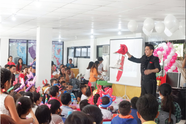 During the party, dubbed as “Winter Wonderland Christmas,” the children were entertained by magicians and showered with toys, gifts, balloon twist, and a bubble show.