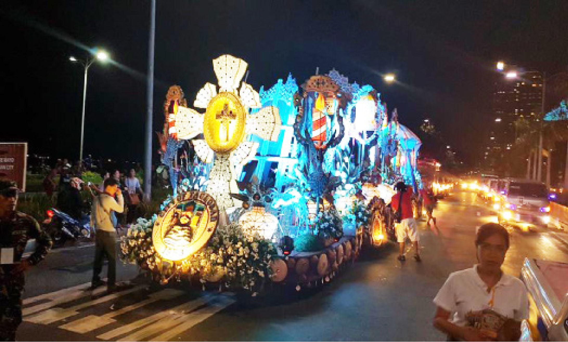 The float’s intricate design, which made use of native materials, draws inspiration from ‘Flores de Mayo,’ an annual religious event highlighted by beautiful maidens and arches bedecked with flowers.