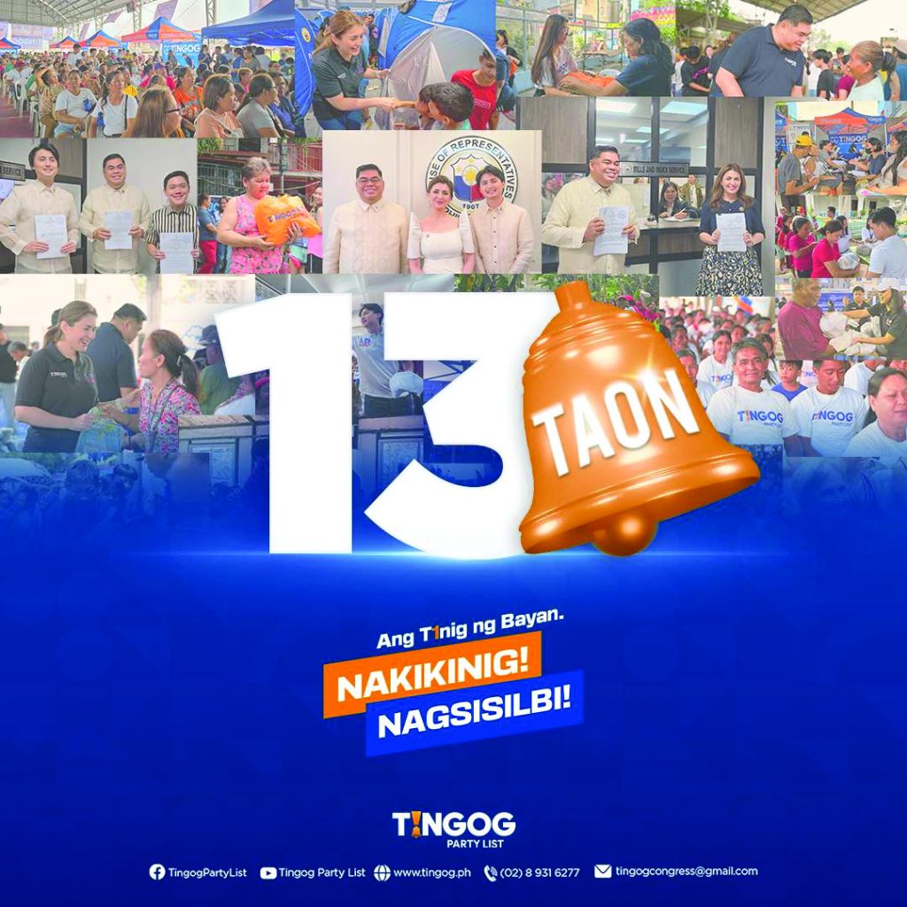 Now entering its 13th year, Tingog vowed to continue pursuing reforms in health, education, social protection, and workers’ welfare.